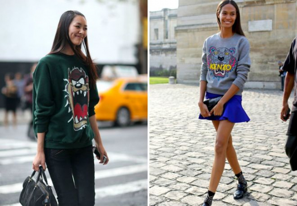 • Спортивные. Кофты-толстовки идеальный вариант для создания комфортных и практичных образов на каждый день. Дизайнеры рекомендуют присмотреться к принтованным моделям, особенно с рисунками в виде мультяшных героев.