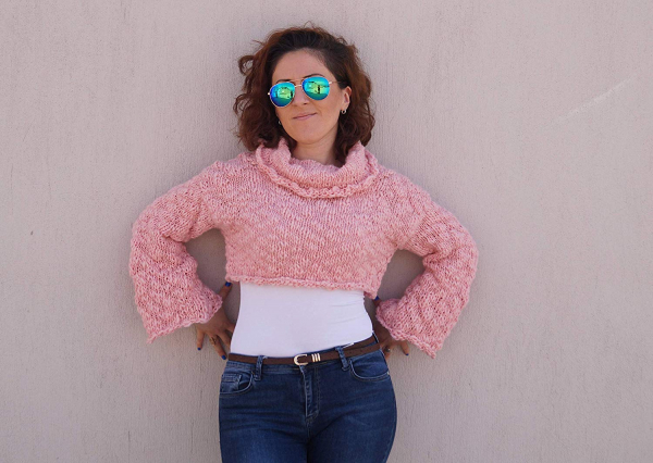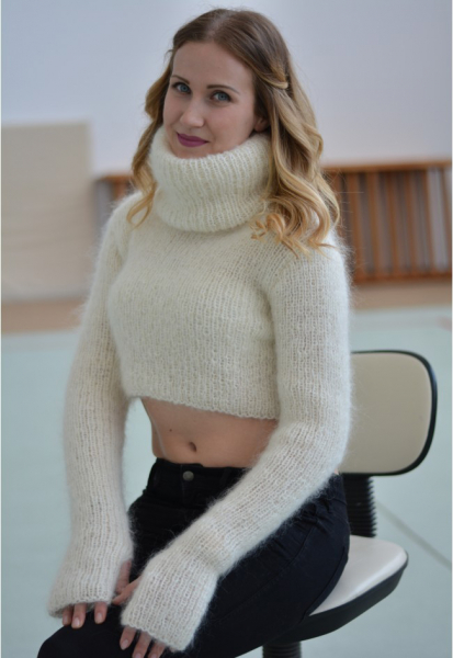 • Кроп-топ. Этот фасон полюбился многим модницам, особенно тем, которые обладают идеальной фигурой. Такие кофты дополнят образ с трикотажными юбками, а также джинсами и шортами с завышенной талией.