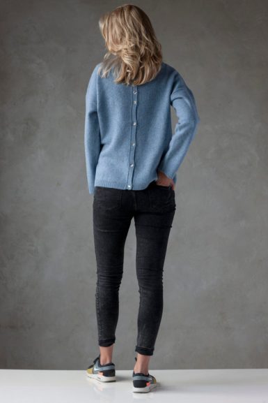 • С застежкой на спине. Такие модели подойдут для неординарных барышень, которые привыкли выглядеть оригинально и не боятся экспериментировать. Сочетать изделия можно как с юбками, так и с брюками, поэтому надеть такую кофту можно по любому случаю.