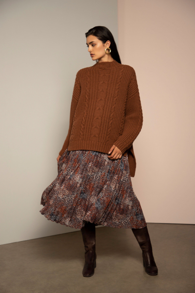 • Асимметричные. Это еще одно новое направление в моде. Изделия внешне напоминают пончо, так как их часто декорируют пуговицами и бахромой. Модницам особое внимание следует уделить асимметричным моделям с геометрическим принтом. Подобного кроя кофты молодят, делают образ интереснее, придают игривости. Сочетать такой элемент гардероба можно с юбками и брюками простых и лаконичных фасонов.