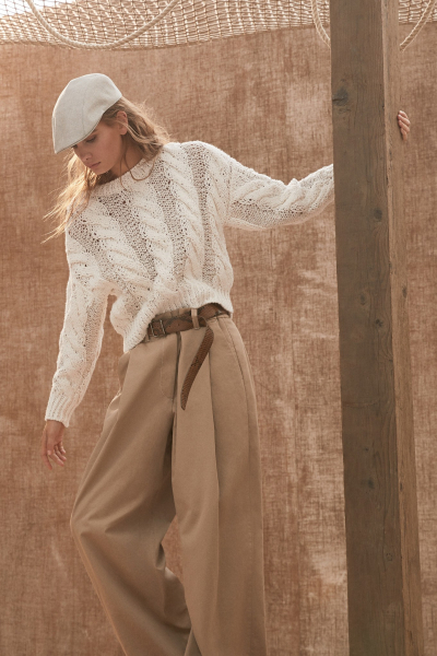 • Шерсть. Одежда из шерсти отличается высокой способностью к сохранению тепла. Поэтому такие изделия идеальны для раннего весеннего периода. Дизайнеры предлагают модницам вещи, связанные вручную, что позволяет создавать стильные жгуты, косы и прочие декоративные элементы.