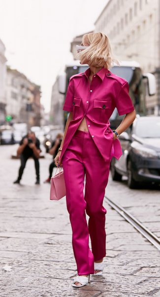К слову, и цветные костюмы выглядят великолепно в летних образах. Они могут служить вечерним или деловым нарядом.