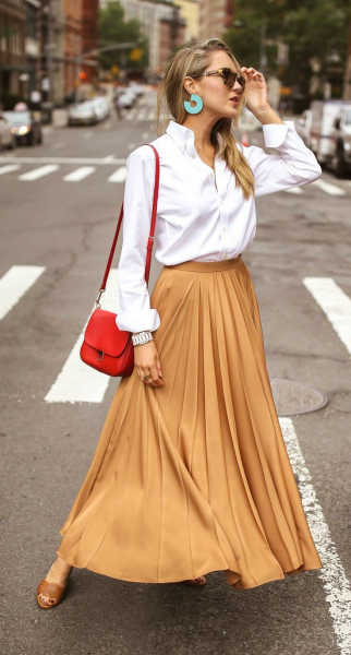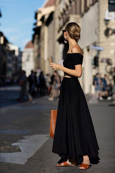 Если вы считаете, что юбки макси подходят только для отпуска, теперь можете попробовать их вписать и в городской стиль. Для этого можно опробовать на практике сочетание с топом, футболкой, вискозной или лаконичной блузой.