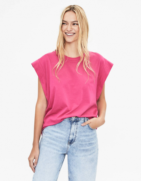 - широкий – такой модный вариант футболки 2020 идеально подойдет для полных женщин, так как позволяет замаскировать полноватые руки, сделать силуэт легче.