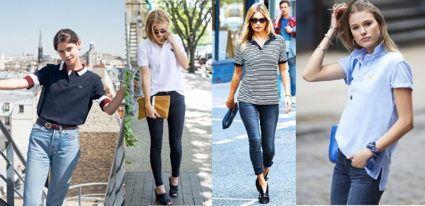 Такая модель обязательно имеет мягкий воротник и планку на нескольких пуговицах. Чаще всего поло отличает манжет на резинке и накладной карман в области груди. Комбинируют ее с джинсами, кроссовками, спортивными штанами, шортами и юбками.