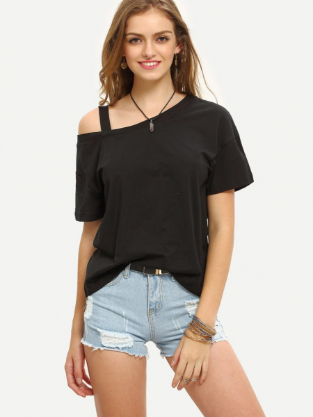 Асимметрия сегодня в тренде во всем, не обошла эта тенденция и модные футболки. Девушкам стоит присмотреться к моделям: