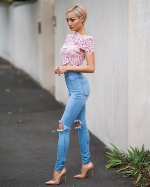 Сочетать такого типа модель с вещами, имеющими низкую посадку – не рекомендуется. Оголенный животик уже утратил актуальность.