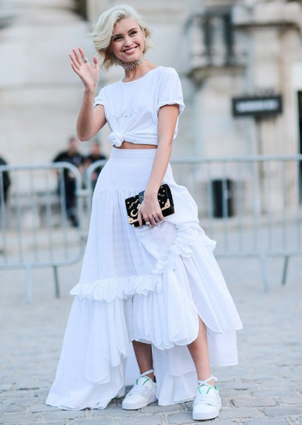 Среди модных тенденций на 2020 год следует выделить укороченные футболки. Такие модели не опускаются ниже талии и позволяют продемонстрировать стройный животик. Летом 2020 такие кроп-топы следует носить с юбочками и коротенькими шортиками, имеющими высокую посадку.