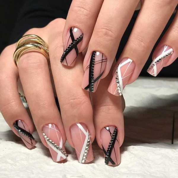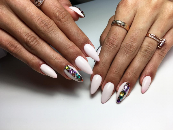 Но на длинных ногтях их нужно дополнить актуальными аксессуарами или рисунками, иначе маникюр будет чересчур сдержанным и классическим.