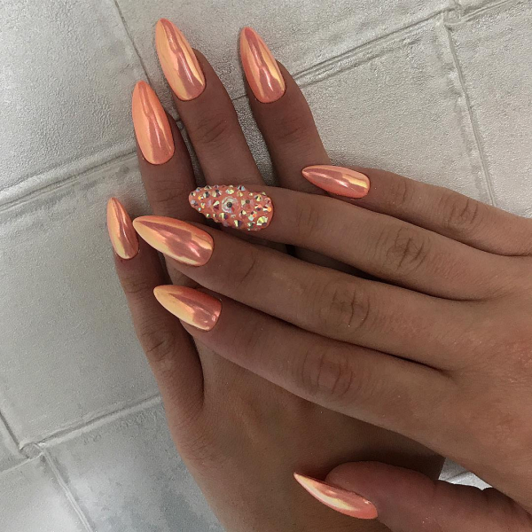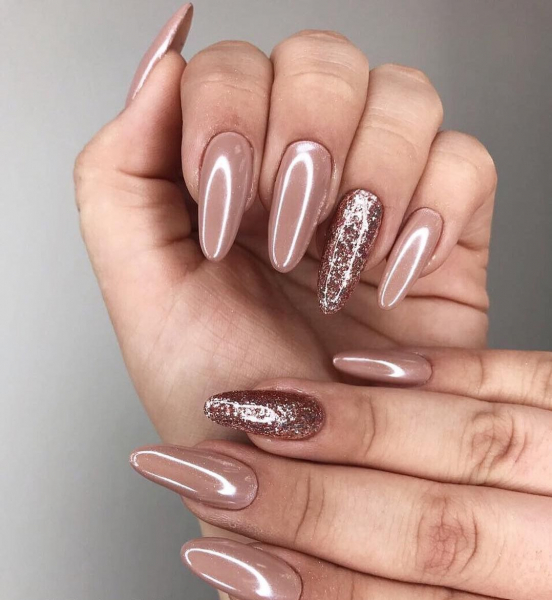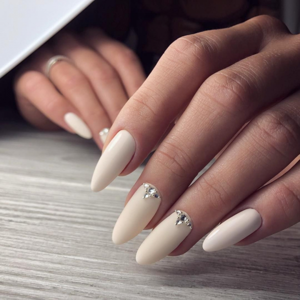 - Миндальная, она практически повторяет естественную форму ногтевой пластины, только срезы делают более аккуратными и ровными.