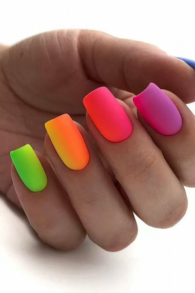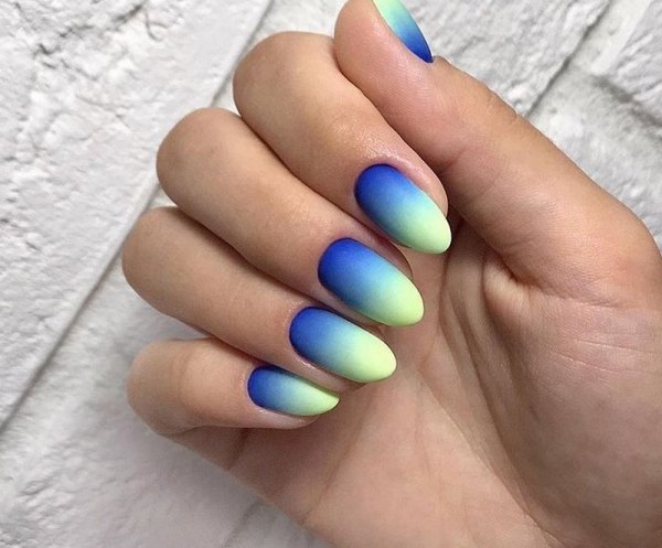- Градиент и омбре. Только сейчас модным является масштабный декор в этом стиле, когда меняется тон от мизинца к большому пальцу.