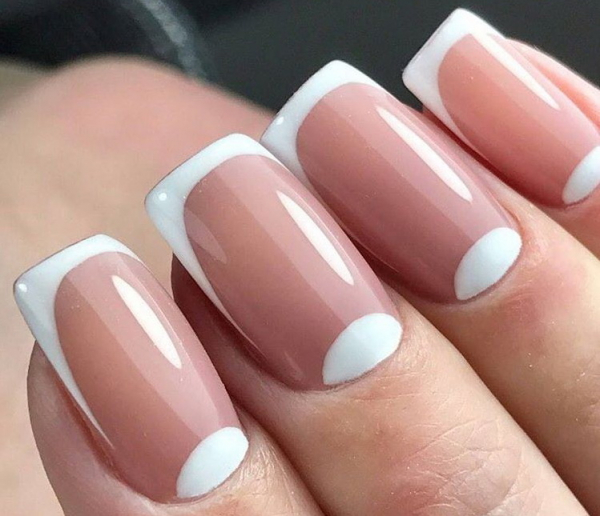 Френч отлично украсит квадратные нарощенные ногти. Также его можно использовать для короткой или средней длины.