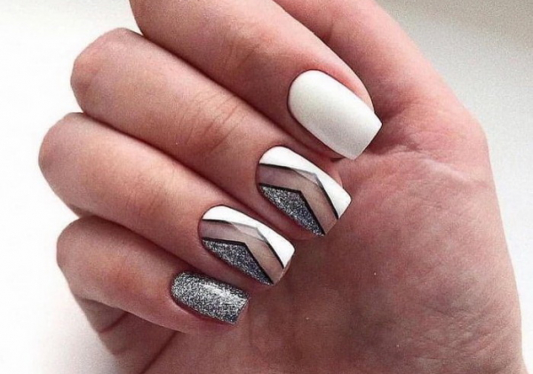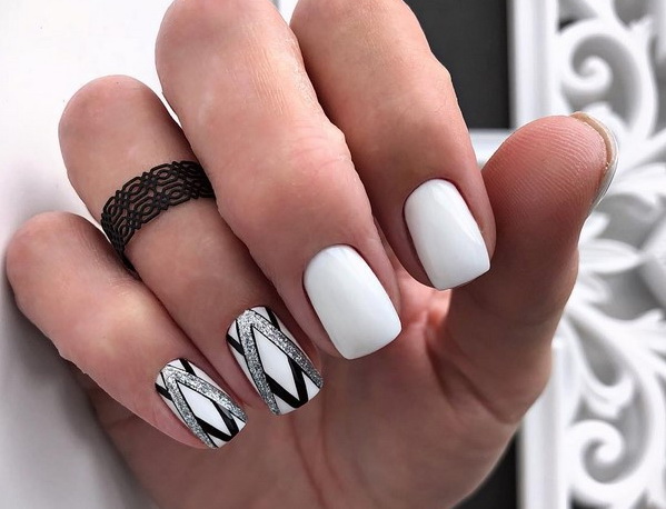 Белый цвет гармонирует с разными оттенками. Невероятно модным будет сочетание этого оттенка с черным цветом. Этот тандем будет использоваться для разных вариаций стильного маникюра.
