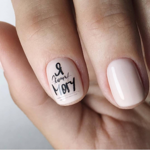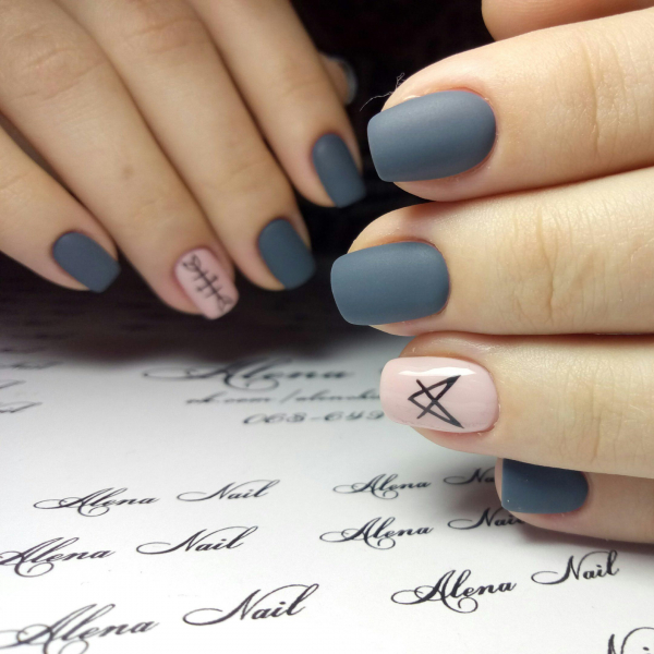 Матовое покрытие можно украсить модными парными рисунками на больших пальцах или надписями.