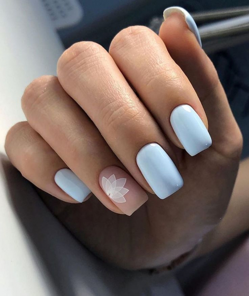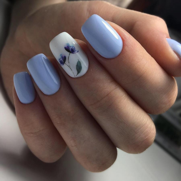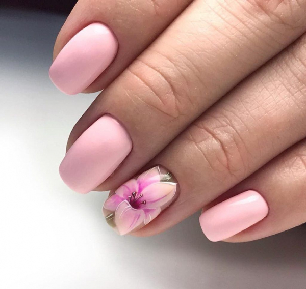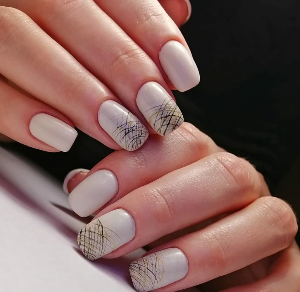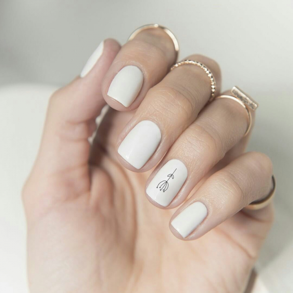 Цветы, веточки, животные, еда, пейзажи будут радовать модниц на их ногтях. Также приветствуются абстрактные рисунки – смесь мазков, полос, точек. Можно дополнить такой маникюр паутинкой или небольшим количеством глиттера.