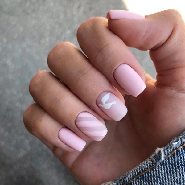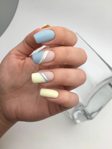 В пастельных тонах на квадратных ногтях будут представлены разные техники: