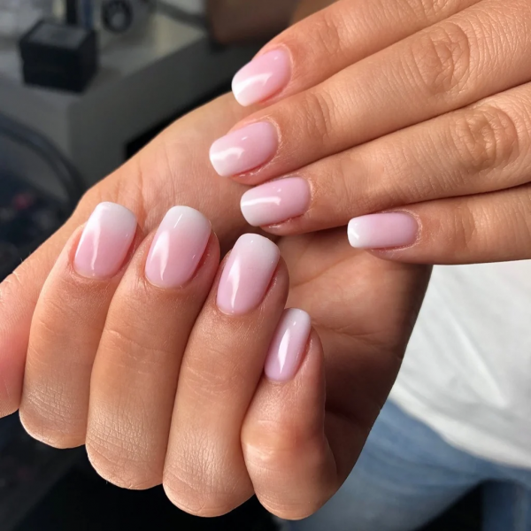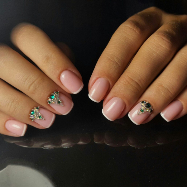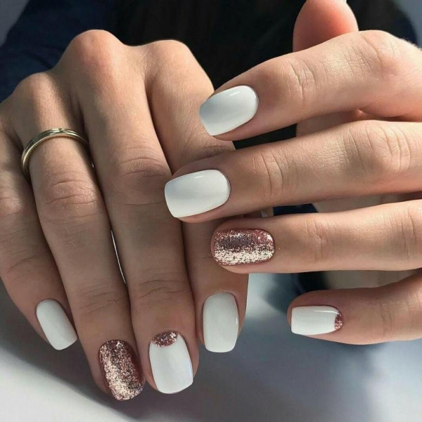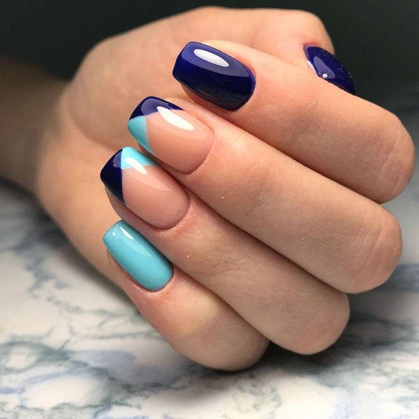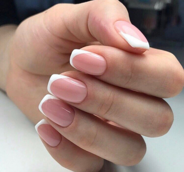 На коротких ногтях красиво смотрятся двухцветные варианты маникюра.