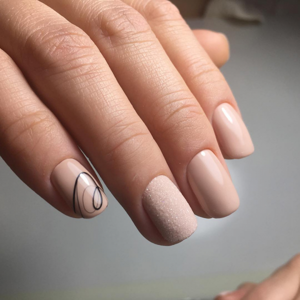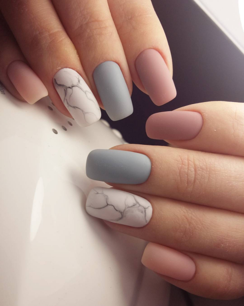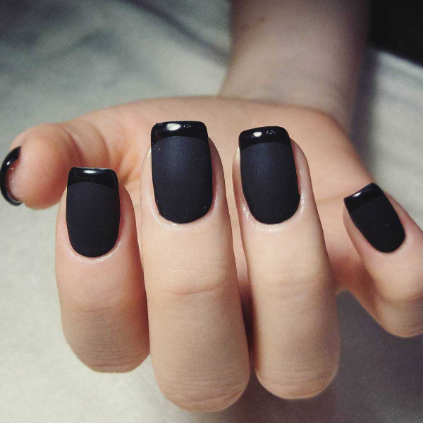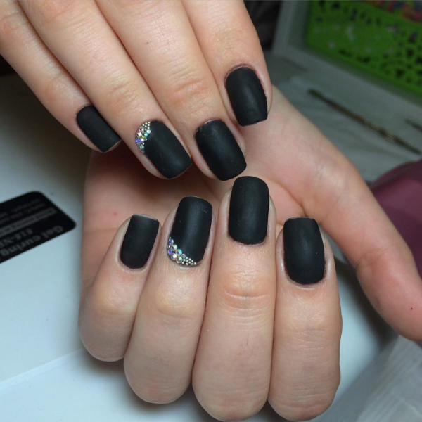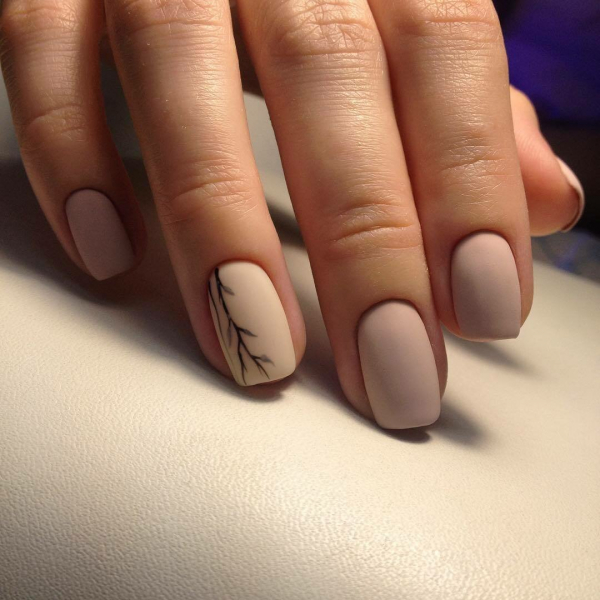 Матовое покрытие будет украшать как длинные, так и короткие ногти. Порадуют ноготки, покрытые матовыми нюдовыми оттенками. Нежные, мягкие цвета можно дополнить черным покрытием на акцентных ногтях. Также оттенки nude в матовом исполнении хорошо смотрятся в сочетании с оригами-рисунками.