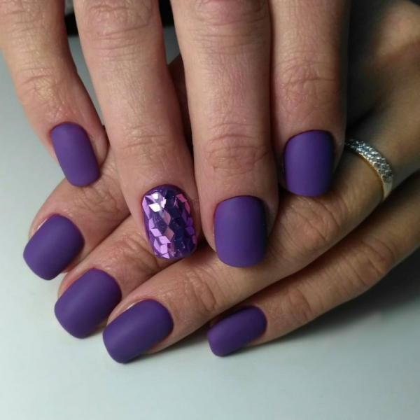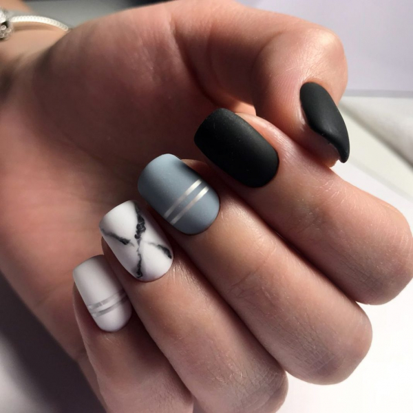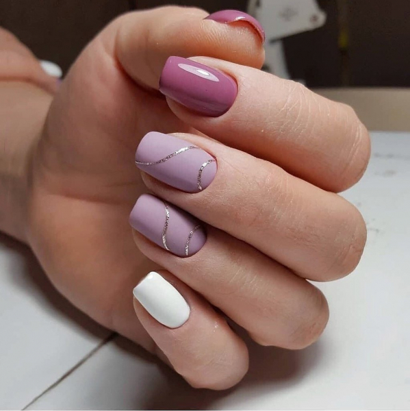 В 2021 году невероятную популярность будут иметь черно-белые сочетания. Эти два цвета в матовом покрытии можно использовать для геометрического маникюра. Также модными в матовом исполнении будут пастельные цвета, насыщенный синий, лиловый, темно-серый оттенки.
