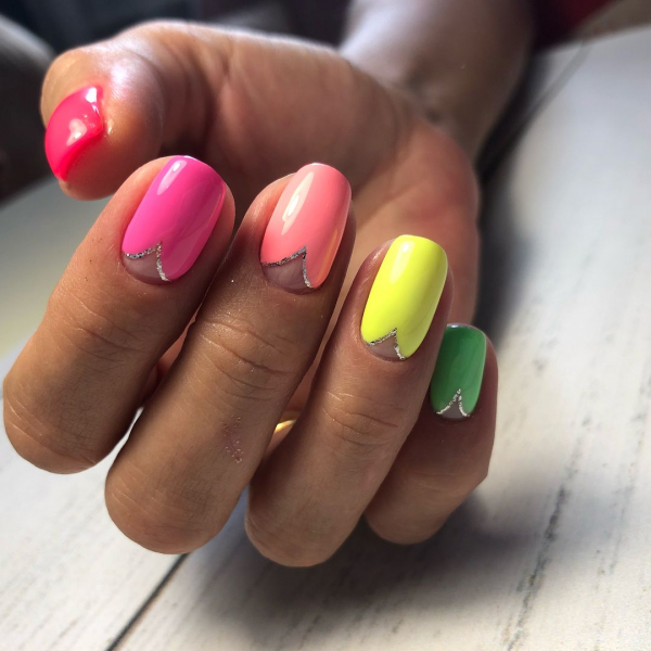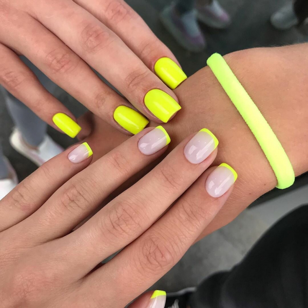 Летом мастера рекомендуют отдавать предпочтение ярким оттенкам гель-лаков на ногтях квадратной формы. Приветствуются яркий монохром, матовое покрытие, неоновые оттенки. Отличным решением для коротких ногтей или пластин средней длины будет разноцветное вертикальное омбре.