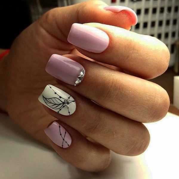 Нежные, или как их еще называют, «зефирные» оттенки служат отличной базой для рисунков. Узоры и орнаменты выполняют разными цветами, но самыми выразительными выглядят рисунки, для которых используют черный или белый гель-лаки.