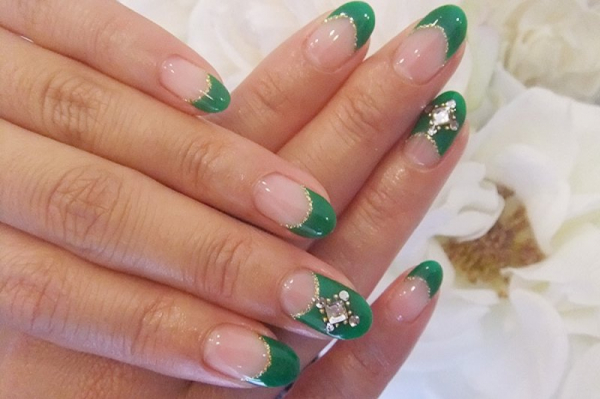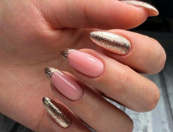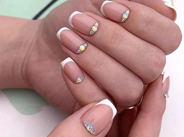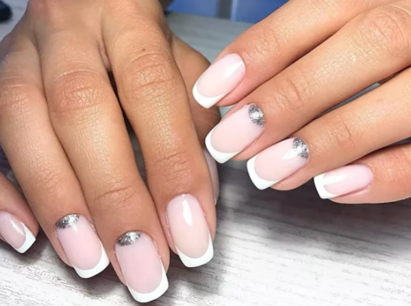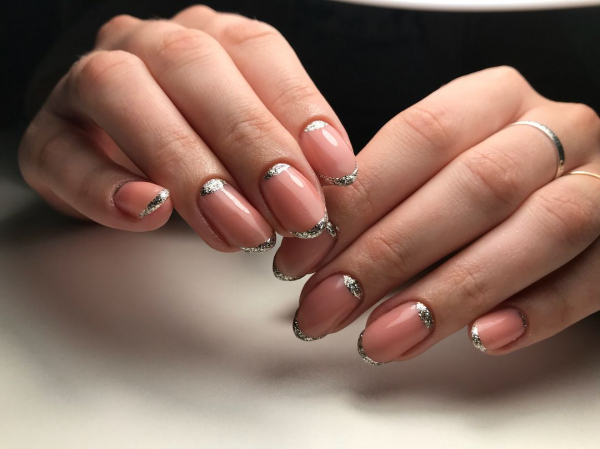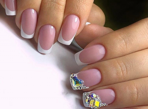 Если французский маникюр выбирается как вариант для романтического свидания, праздничного повода или торжественного события (празднование дня рождения, свадебная церемония, юбилей, корпоратив и другие мероприятия), то можно остановиться на эффектном варианте френча: