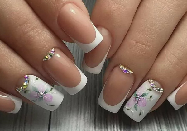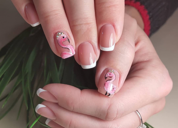 Принты добавляют яркости и объемности классическому французскому маникюру.