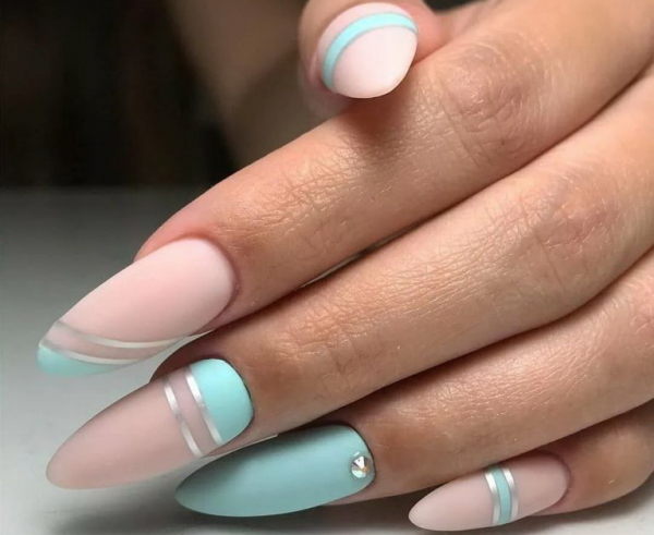 Для лета 2021 года будет актуален минимализм и довольно строгие геометрические линии, поэтому слишком много декора будет излишним. Можно украсить безымянный палец, или только кончики/лунки ногтей, не “перегружая” образ украшениями.