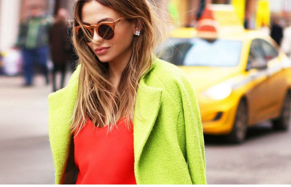 - Неон. Яркий и ослепляющий неон плавно перекочевал из летних коллекций в осенние. Особенно много его было в лаймовом цвете. Именитые дизайнеры предлагают сочетать лайм с классическим черным, насыщенным фиолетовым или носить соло.