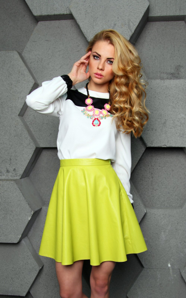 Сегодня в тренде нюдовые оттенки и спокойная пастельная палитра, поэтому следует присмотреться к юбкам розового цвета, лаймого или фисташкового оттенков. Лук получится максимально женственным и изысканным.