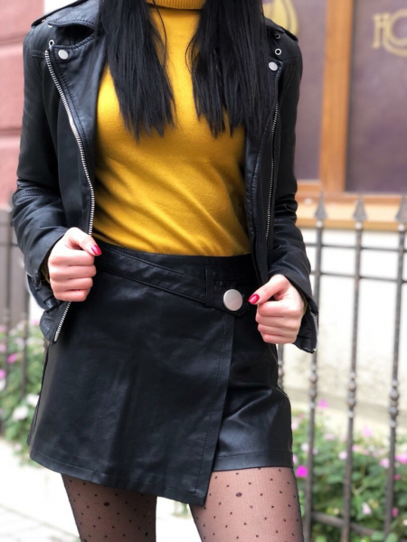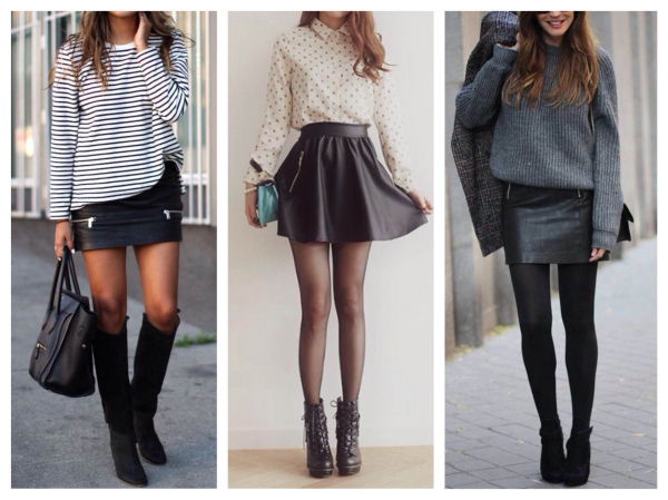 - черную кожаную юбку можно носить с верхом и аксессуарами любых цветов и оттенков.