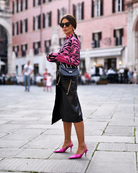 Интересно! Летом к кожаной юбке миди можно надеть ультрамодный кроп-топ или майку в пижамном стиле – такие игры на контрасте всегда выглядят оригинально и необычно.