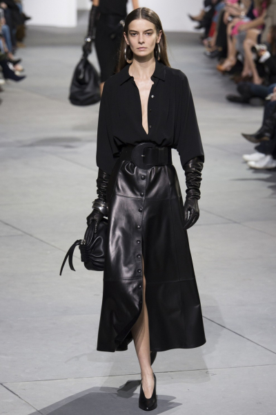 Интересно! В тренде не только узкие мини, но и кожаные юбки солнце и трапеция.
