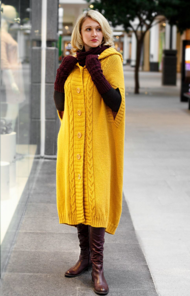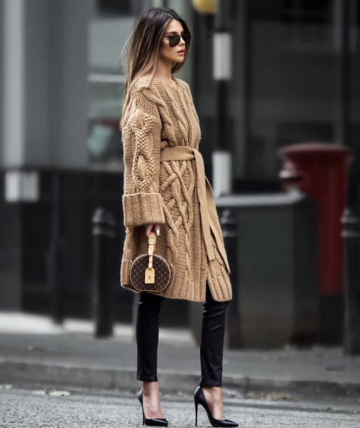 Вязаное изделие не нуждается в ярком дополнении, поэтому идеальная обувь для такой одежды должна быть простой и лаконичной. В этом случае основное внимание должно концентрироваться на эффектной вязаной фактуре.