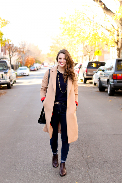С пальто ниже колена лучше всего носить невысокую обувь, например, ботильоны или полусапожки на каблуке. Если погода позволяет, можно комбинировать такой верх с окфордами.