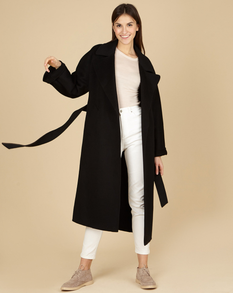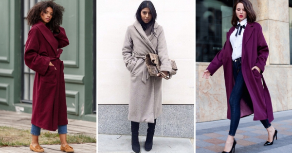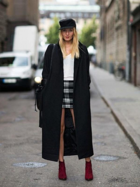 Не застегнутое длинное пальто комбинируют с полуспожками. Модели в пол, в которых пуговицы доходят лишь до середины бедра, носят с узким платьем и ботильонами. При ходьбе такое пальто распахивается, демонстрируя не только красоту женских ног, но и удачно подобранную обувь.