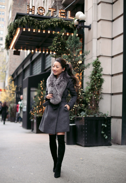Интересно! Помните, что между низом пальто и верхом обуви должен оставаться зазор. Если низ платья выглядывает из под пальто, то зазор должен быть между ним и обувью. Исключение – узкие облегающие ногу сапоги, которые могут «прятаться» под одеждой.