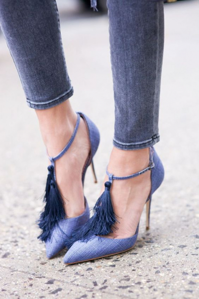 Обувь из замши имеется в гардеробе каждой модницы. Туфли, выполненные из этого материала, как на каблуке, так и без него, отлично подойдут для свидания в ресторане или делового события в офисе. В повседневной жизни к такой обуви лучше всего надевать узкие брюки и обтягивающую кофточку.