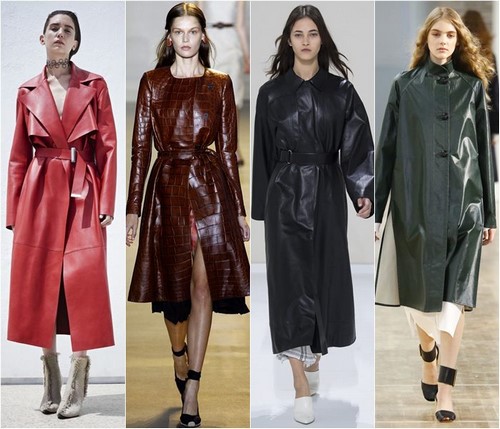 - Кожаные плащи. Вы ведь видели такие в фильмах 80-х годов? Стиль тех времен не покидает «глянец». Выбирайте плащ из матовой или лакированной кожи, необычно будет смотреться металлик.