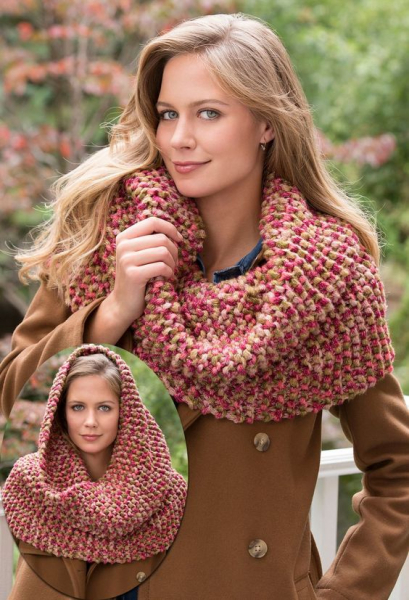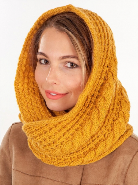 Снуд подойдет тем женщинам, которые не носят шапки из-за того, что боятся испортить прическу. Носить хомут очень просто и без риска для укладки.