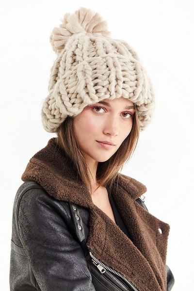 Специалисты рекомендуют носить вязаные бини под куртку. Также ими можно дополнить образ с шубой из дорогого меха – игра на контрастах выглядит стильно и оригинально.