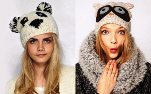 Шапки, напоминающие зверей, характерны сегодня не только для детской, но и для женской моды. Зрелым женщинам они не подойдут, а вот на юных энергичных барышнях будут смотреться великолепно.