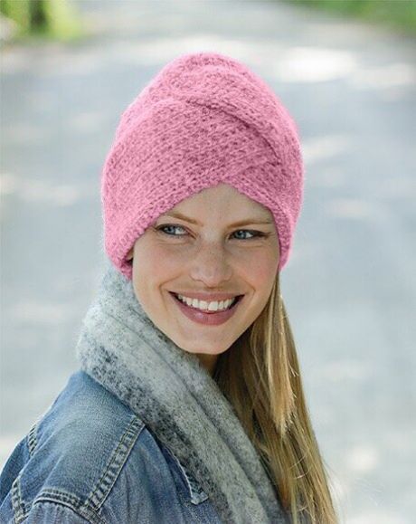 Интересно! Девушки, знакомые со спицами и основными принципами вязки, запросто сделают повязку в виде чалмы своими руками.