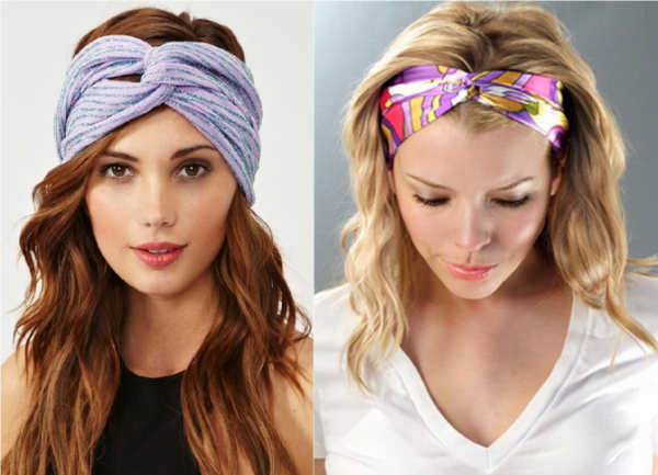 Это один из самых простых и универсальных способов завязывания стильного аксессуара на голове, особенно, когда хочется привнести в образ чего-то нового, добавить изюминку. В зависимости от личных предпочтений такую повязку можно сделать любой ширины. Широкая полоска интересно смотрится в сочетании с прическами из 60-х, когда волосы собраны сзади в пучок.