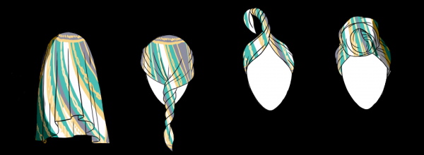 Чтобы завязать тюрбан, возьмите довольно длинное изделие. Положите его на голову так, чтобы он плотно прилегал ко лбу и макушке. Свободные края перекрестите на затылке, подведите ко лбу и опять перекрестите.