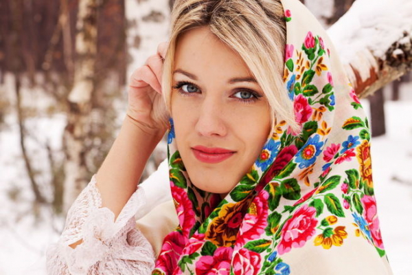 Интересно! Обладательницы длинных волос могут выпустить несколько прядей из-под платка, расположив их вокруг лица.