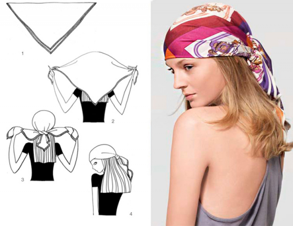 Этот способ завязывания знаком каждой девушке. Именно на манер косынки носили подобный головной убор наши бабушки. Главное требование современной моды – не завязывать слишком тугой узел.