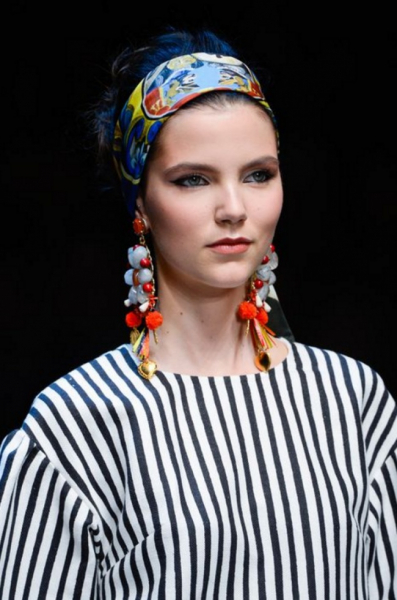Чтобы придать образу оригинальности, модницы нередко делают яркий платок элементом прически.