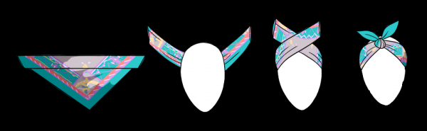 Завязать такой аксессуар несложно. Просто сложите его треугольником и накиньте на голову. Свободные концы перекрестите под подбородком, пропустите под шеей и завяжите сзади свободным узлом.