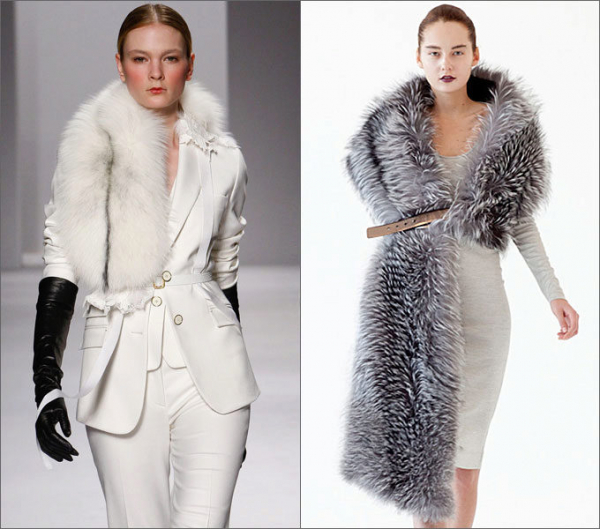 - к пальто без выработки идеально подойдут вязаные, шерстяные и меховые шарфы;